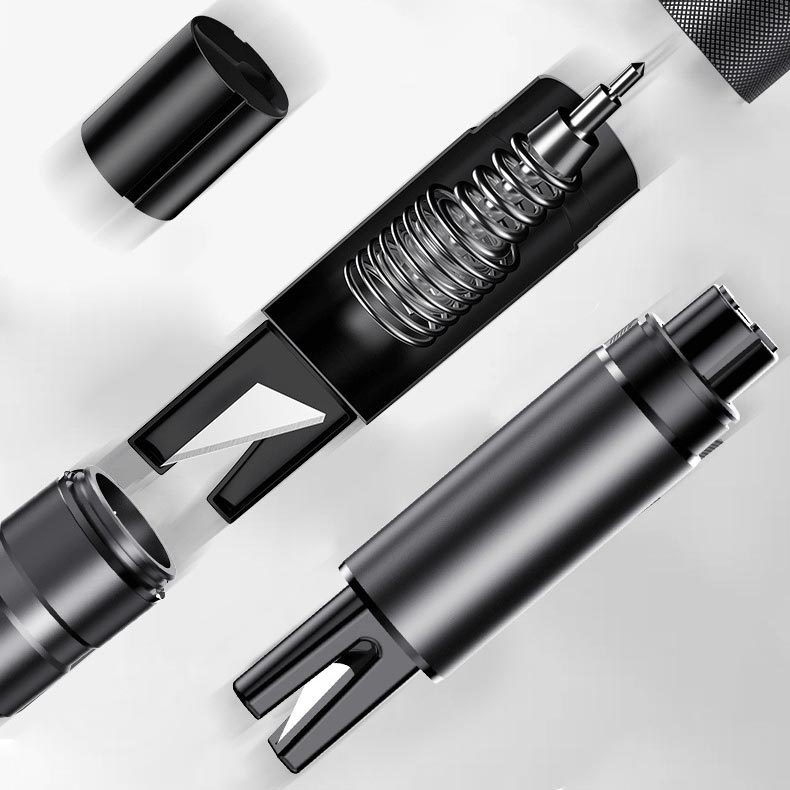 Flüchte im Handumdrehen! Dieser Notfallhammer ist dein schneller Weg zur Sicherheit. In einer Krise, stelle dir vor, du bist im Auto eingesperrt und die Fenster geben einfach nicht nach. Wenn ein Notfall eintritt, greife diesen Hammer fest in die Hand und drücke ihn mit einem einzigen, kraftvollen Stoß gegen das Autofenster. Dank seiner eingebauten Hochdruckfeder zerspringt das Glas sofort und bietet eine schnelle Fluchtmöglichkeit.