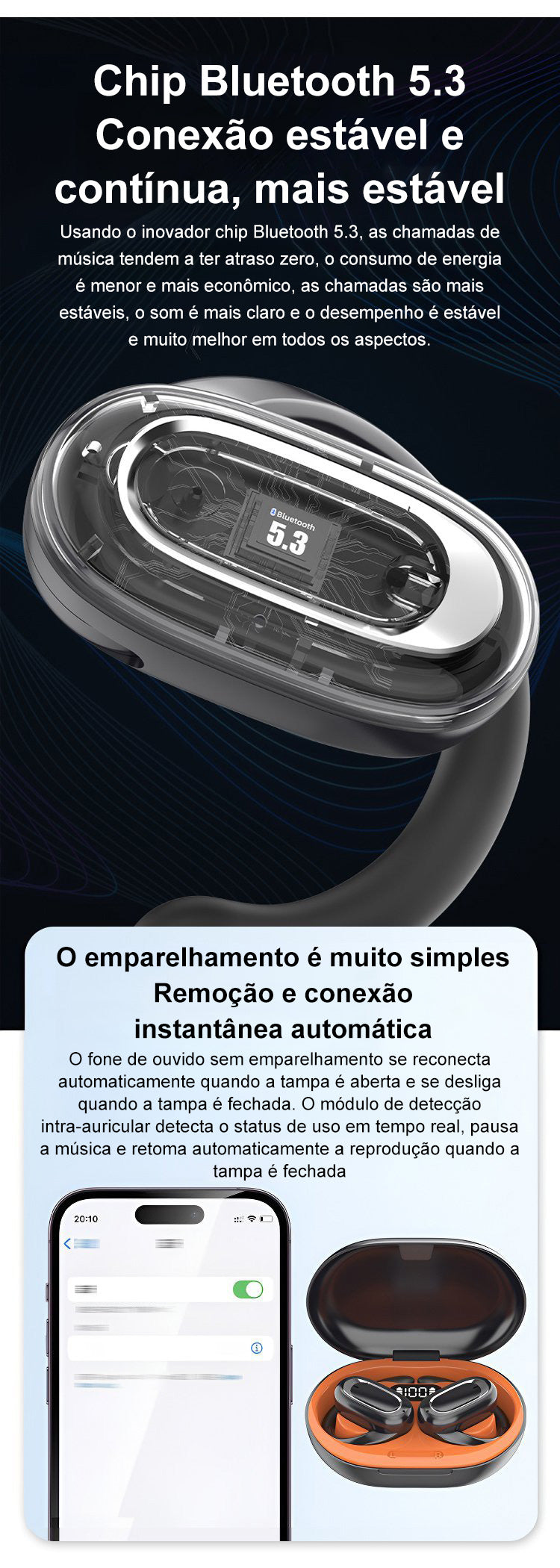 Fone de Ouvido Bluetooth Sem Fio para Pendurar na Orelha
